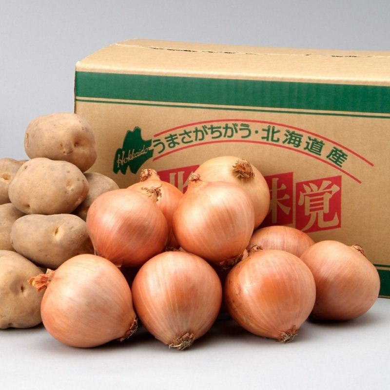 北海道の秋の味覚、きたあかりと玉ねぎをお届けします。きたあかりは少し黄色く、甘みがあり肉じゃがやカレーなどに使用いただくとより一層美味しくお召しあがりいただけます。