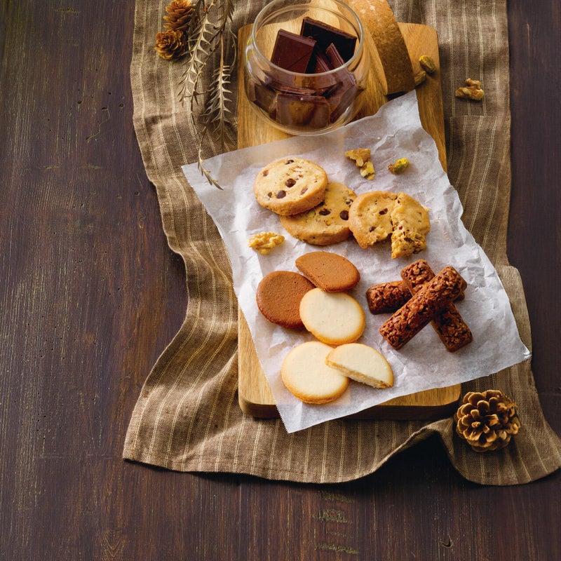 ナッツとチョコのざっくりクッキー、なめらかな口当たりの生地に2種類のチョコクリームをサンドしたラングドシャ。コーヒー、紅茶によく合う焼き菓子を詰合せました。