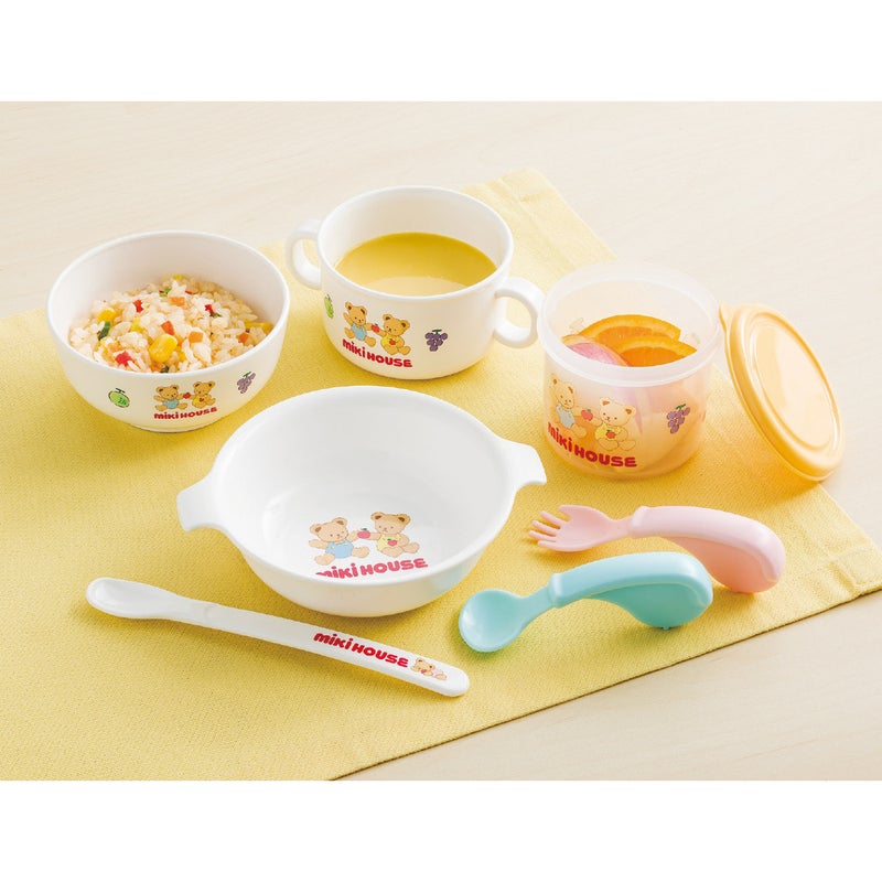 はじめての離乳食に便利なテーブルウェアセット(食器セット)です。離乳食の初期から自分で食べられるようになるまで長くお使いいただけます。