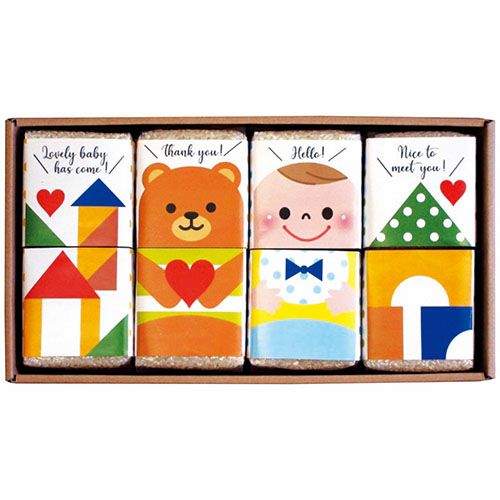 出産内祝いのお名入れギフトです。お米は新潟県産こしひかり無洗米を使用。お米の博士号「五つ星マイスター」が厳選したお米です。