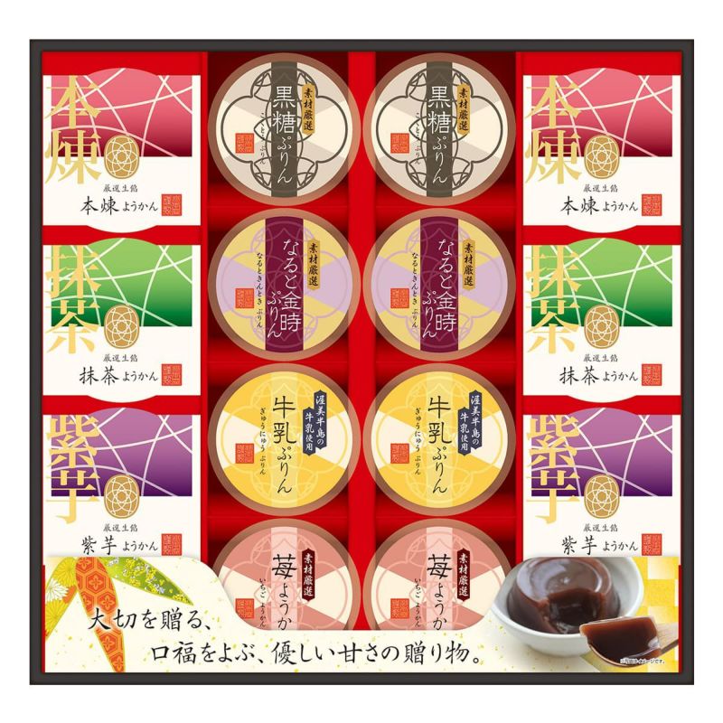 和洋の枠を超えたスイーツの詰合せで、贈り物にも、自分へのご褒美にもなるギフトです。