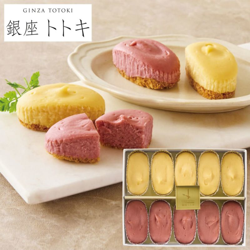 「銀座トトキ」のデザートで提供されているチーズケーキをイメージして作りました。しっとりとしたクラムの上に、さつまいもと紅いもを使用した2種類のチーズケーキをセットでお届けします。