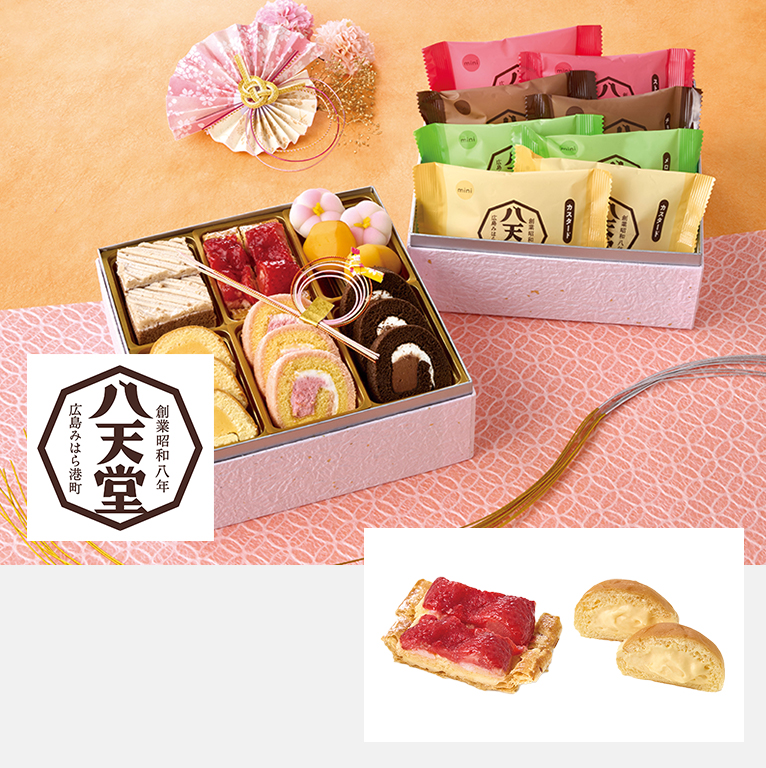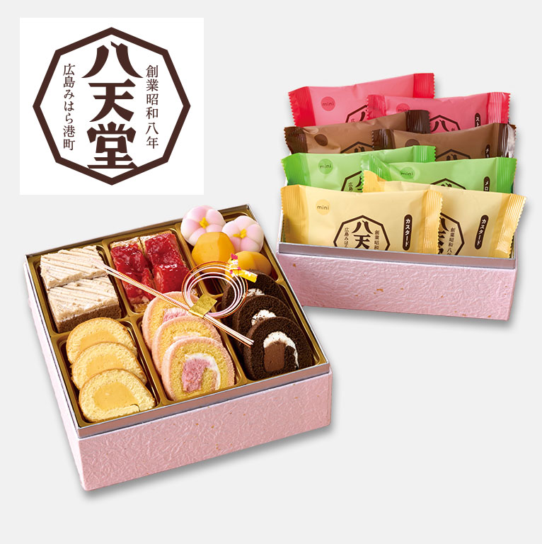 八天堂の主力商品くりーむパンをはじめ、ストロベリーパイやロールケーキなど新春の訪れを色鮮やかに飾るスイーツをお重に詰合せました。