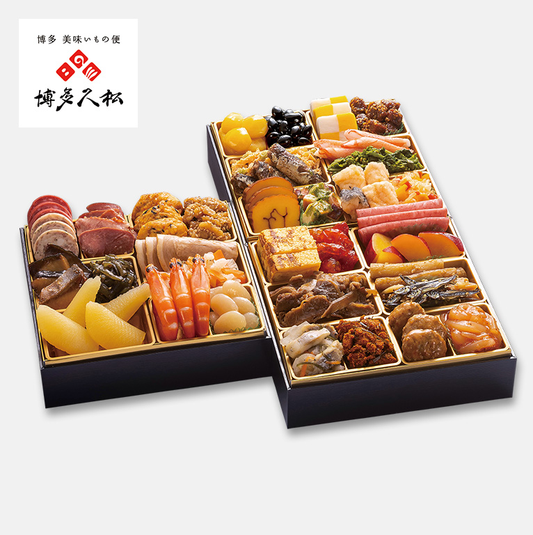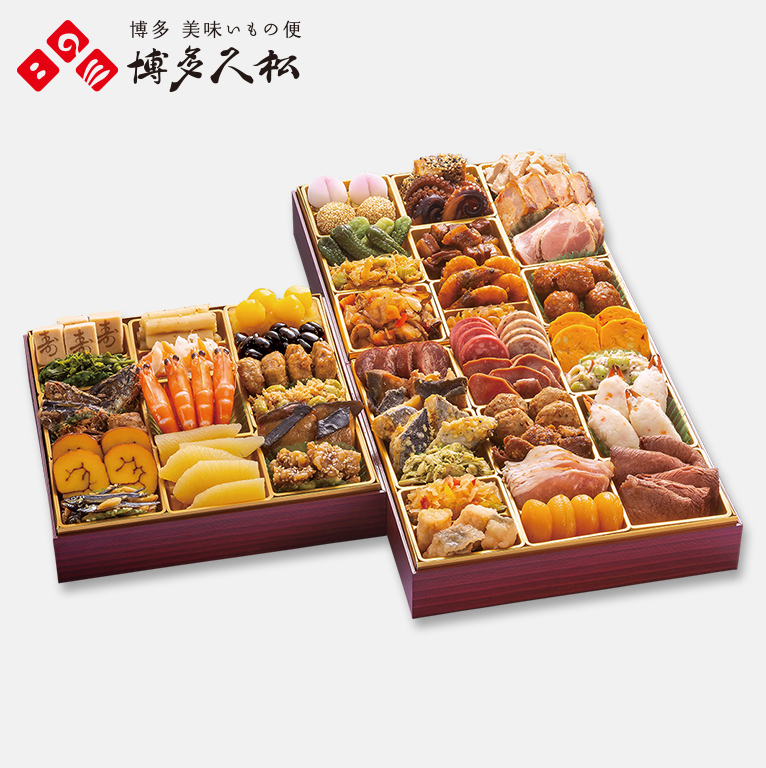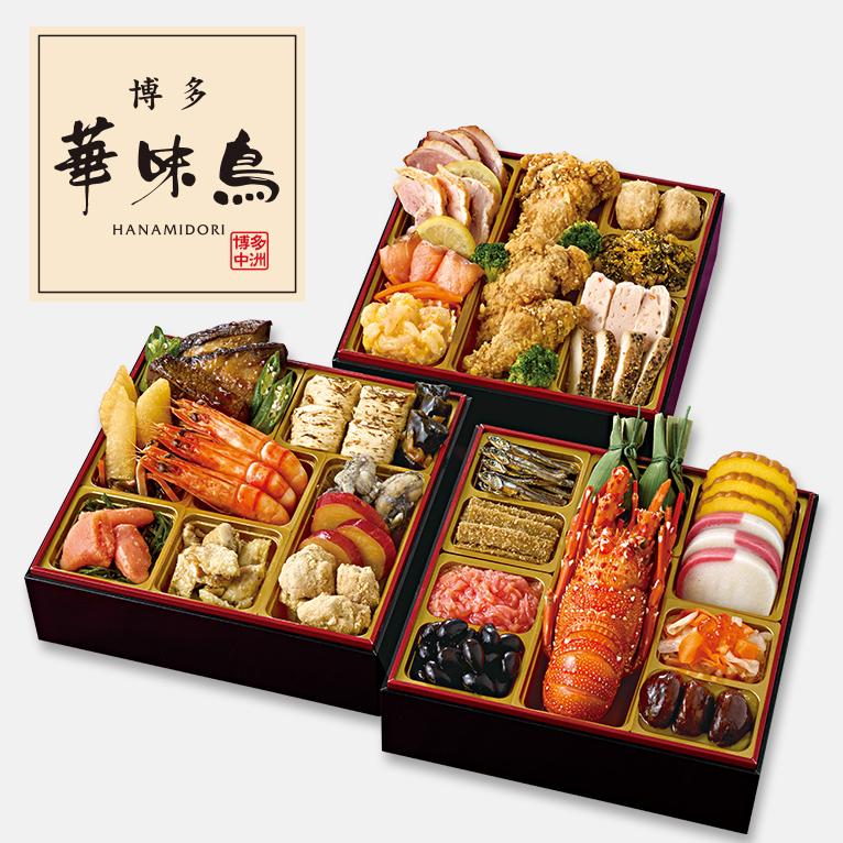 水たき料亭「博多華味鳥」監修のおせち。伝統的なおせち食材と華味鳥を使った食材をバランス良く詰合せました。華味鳥ももの炭火焼や華味鳥手羽元の唐揚げなど「博多華味鳥」ならではの食材も味わえるおせちです。