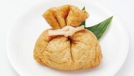 減塩しょうゆを使用した調味液できんちゃくを炊き込みました。五目の旨味が、煮汁と一緒に口に広がります。