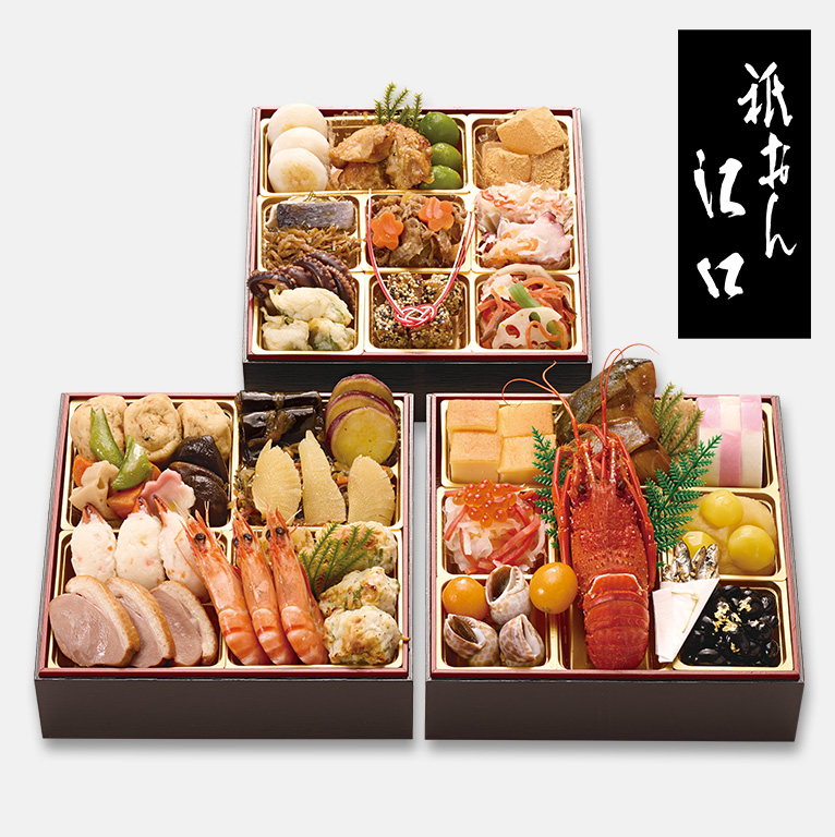 「京都吉兆」で7年間の修行をした「祇おん江口」店主が監修したおせち。調理法や盛付けに至るまでこだわりました。江口大将の思いが込められた京都割烹らしい食材が詰まったおせち料理です。